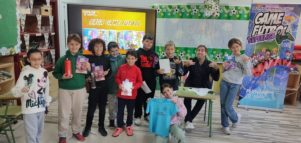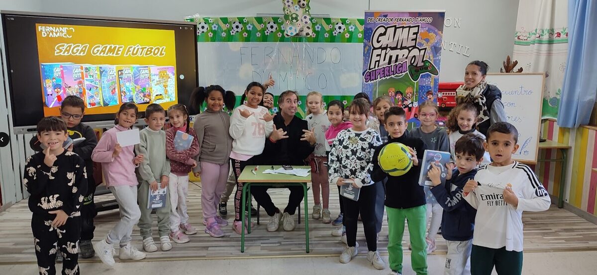 No olvidemos que hemos solicitado el programa Encuentro con Autores ya que pertenecemos a la Red de Bibliotecas Escolares REBEX y nos concedieron a un exfutbolista, Fernando D´amico y escritor de sus libros “Game Fútbol” en los que el alumnado estuvo entusiasmado con la presencia y dinamización del autor.