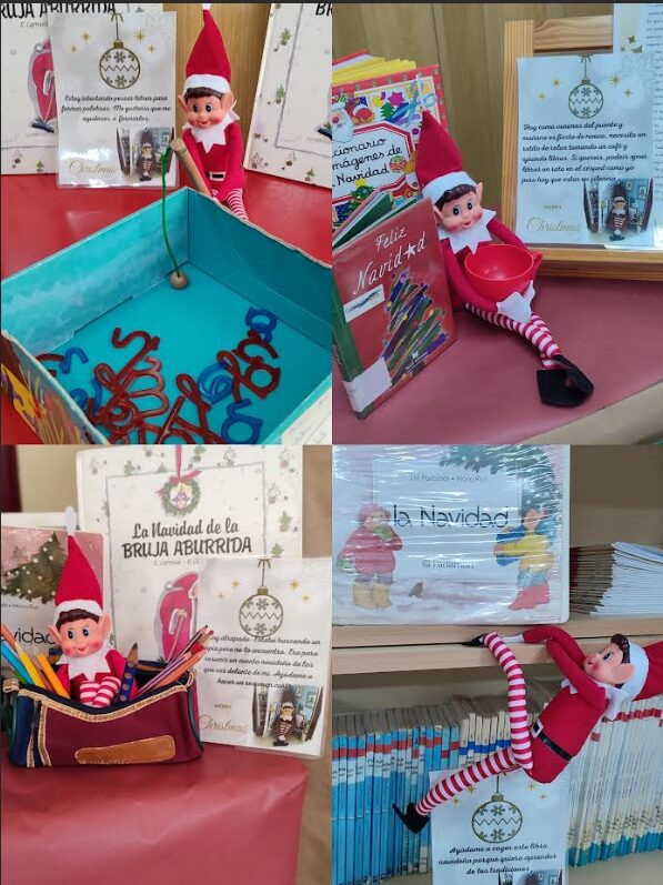 Para terminar el trimestre, se ha trabajado el tema de la Navidad. El alumnado ha llegado con motivación e interés a la lectura a través de la visita de nuestro proyecto de Biblioelfo. El pequeño elfo ha hecho sus travesuras diarias de manera que el alumnado tenía que hacer unos retos así como su motivación de realizar préstamos navideños.