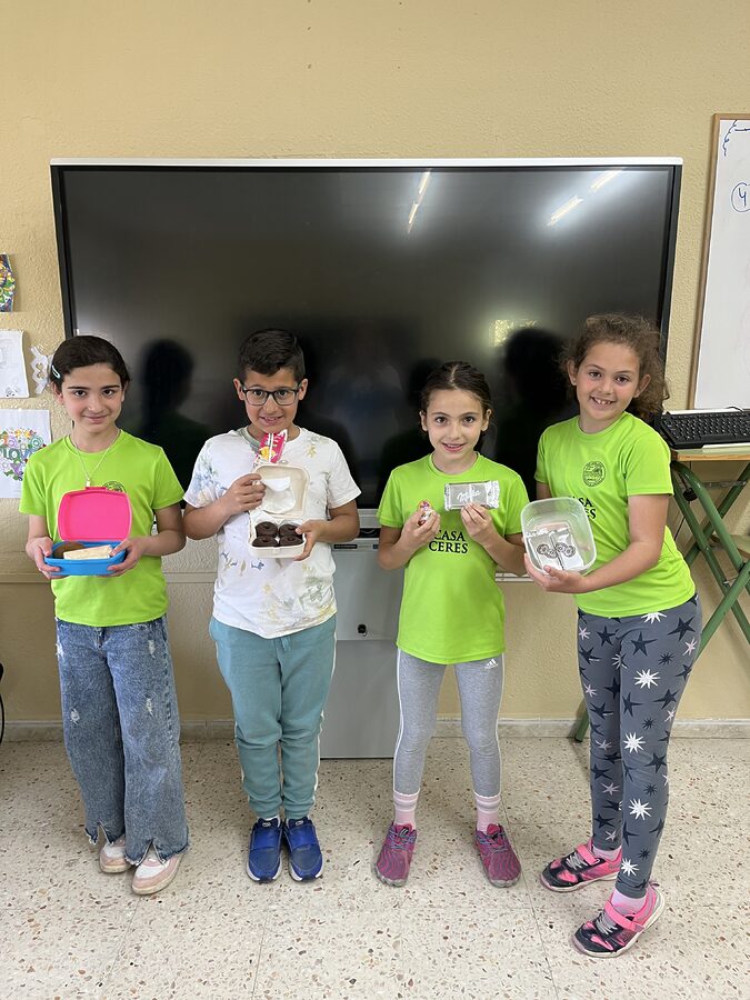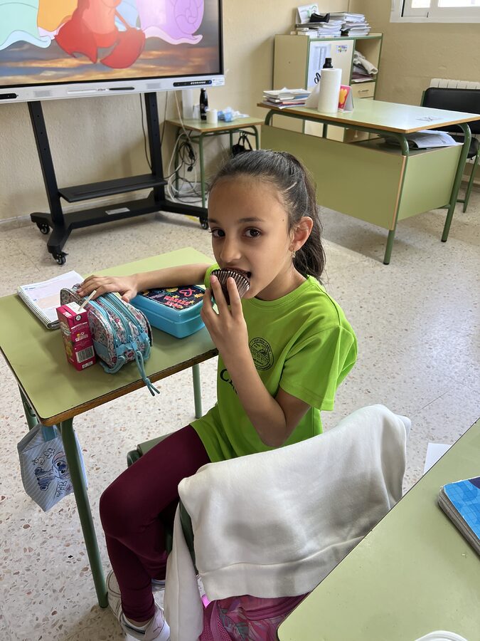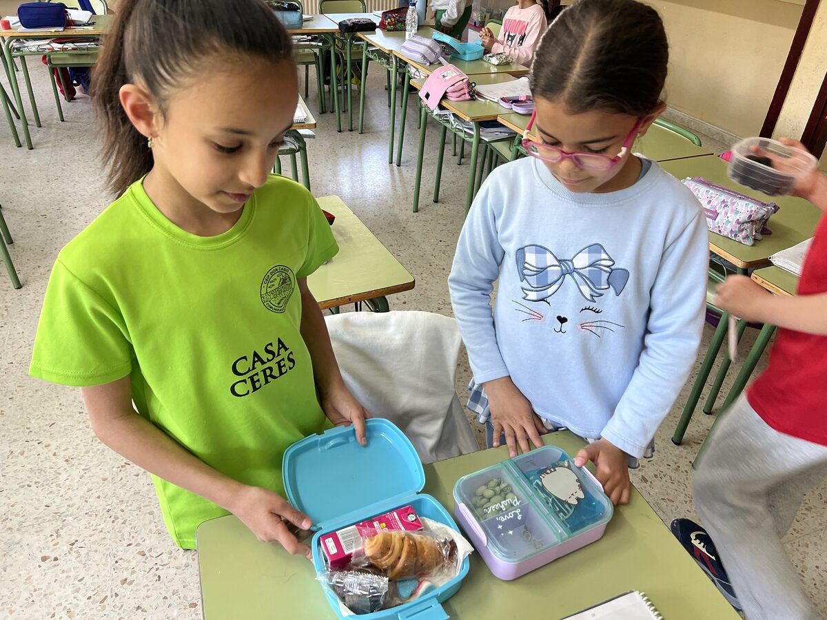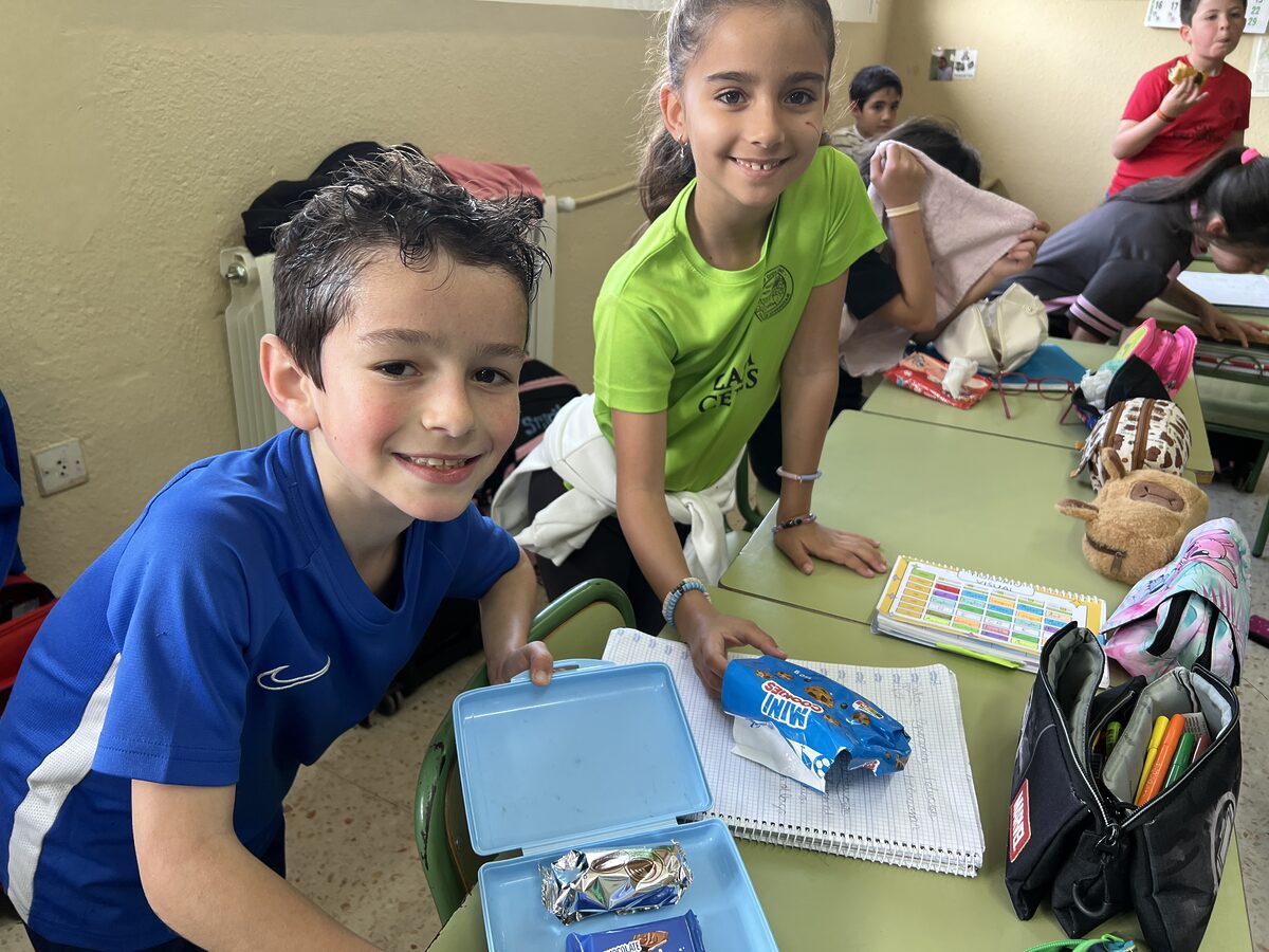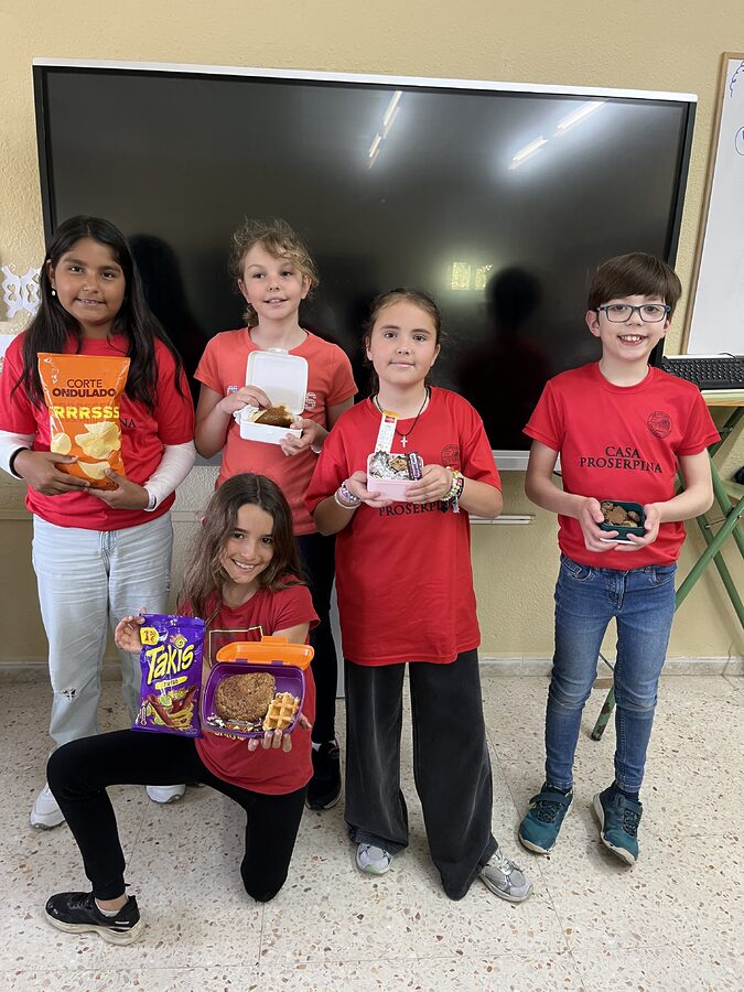 El alumnado de Ceres y Proserpina el pasado viernes pudo disfrutar de su merienda favorita, luciendo las camisetas verdes y rojas que les caracterizan. Esta recompensa ha sido la guinda del pastel, ya que ha coincidido con el último día del trimestre.